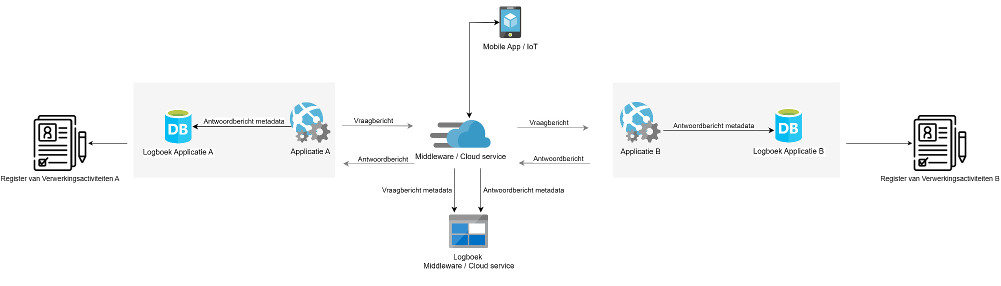 De standaard Logboek dataverwerkingen kan ook worden toegepast in een middleware- of cloud-omgeving. Het netwerkcomponent logt binnenkomende en uitgaande berichten.